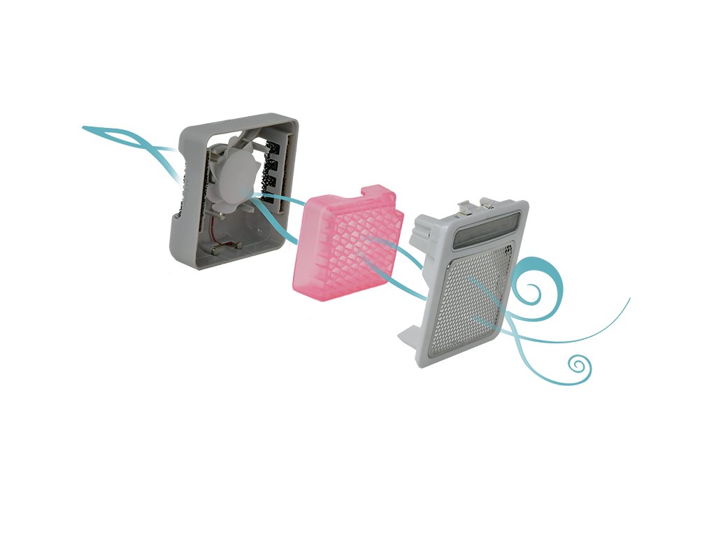 - Provonění je zajišťováno pomocí vysokorychlostní vrtulky, která pracuje periodicky po celou dobu, kdy je určený prostor obsazen.