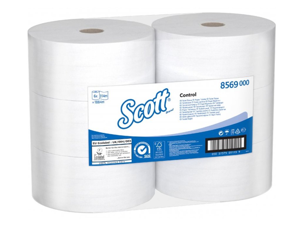 - Za účelem ekologické záruky je toaletní papír se středovým podáváním Scott® Control™ vyrobený ze 100% recyklovaného vlákna, disponuje certifikací FSC i evropskou ekoznačkou a je snadno splachovatelný.