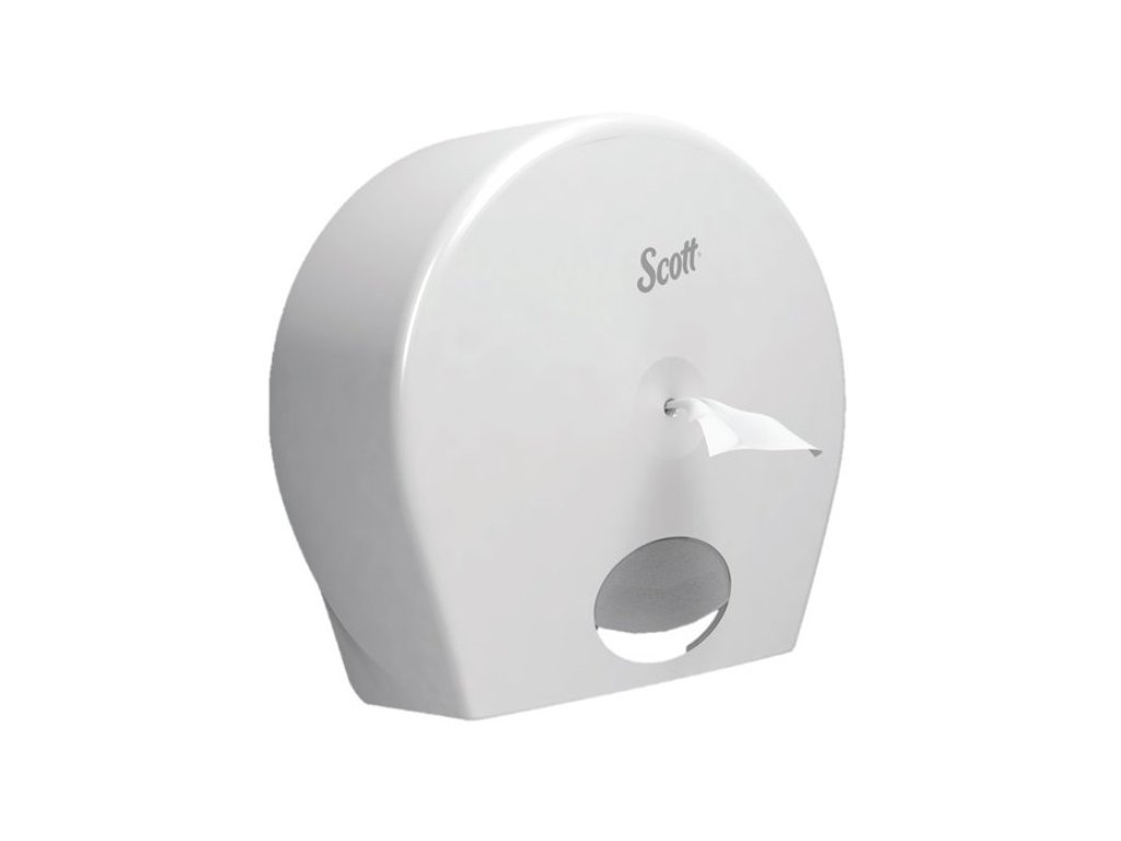 Scott Controll zásobník na toaletní papír je vhodný pro prostory s vyšší návštěvností. Jedná se o systémové řešení se středovým odvinem role, čímž se prodlouží životnost role. Díky svému designu dobře přilne ke zdi a funguje tak i v malých prostorách. Dávkuje toaletní papír po jednom kusu a je konstruován tak, aby v zásobníku nezůstávali prachové částice. Scott controll je řešen tak, aby byla jeho instalace jednoduchá a zároveň zaručuje bezpečnost náplně uzamikatelným krytem.