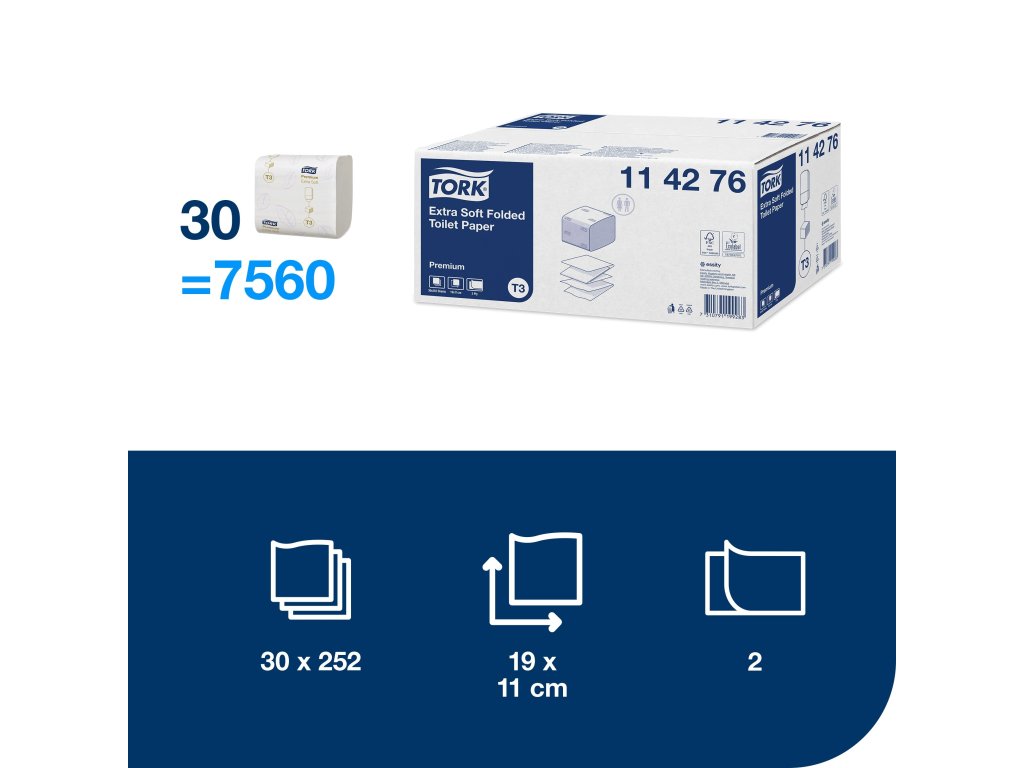 TORK 114276 – Folded extra jemný toaletní papír T3, 2vr., 30 x 252 ks - Karton