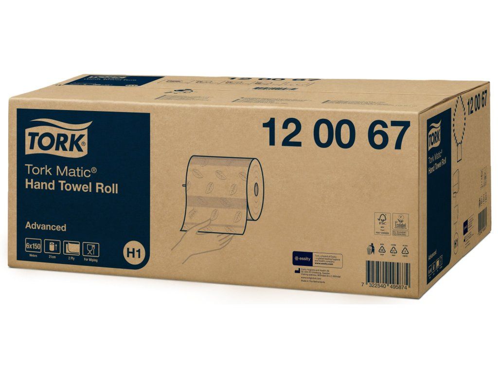 Tork Matic® papírové ručníky v roli jsou silné a díky výborným absorpčním schopnostem zaručují efektivní sušení rukou.Role jsou vhodné pro Tork Matic® zásobníky na papírové ručníky v roli H1, které byli navrženy pro snadnou údržbu na toaletách a umývárnách s vysokým provozem. Díky dávkování po jednom útržku šetří čas a snižují spotřebu.