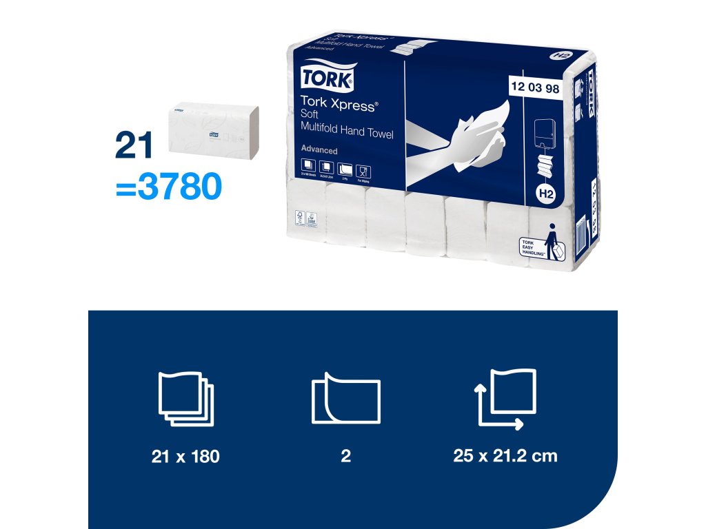 TORK 120398 – Xpress® jemné papírové ručníky Multifold H2, 2vr., 21 x 180 ks - Karton