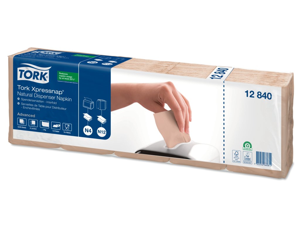 Tork Xpressnap® Natural jednovrstvé ubrousky do zásobníku jsou vyrobeny ze 100% recyklovaných vláken. Jsou proto skvělou volbou, pokud chcete prezentovat svůj závazek k ochraně životního prostředí. Ubrousky jsou kompatibilní s Tork Xpressnap® zásobníky na ubrousky N4, které jsou ideální pro samoobslužné restaurace. Systém vám pomůže snížit spotřebu ubrousků o 25 % v porovnání s tradičními zásobníky na ubrousky.