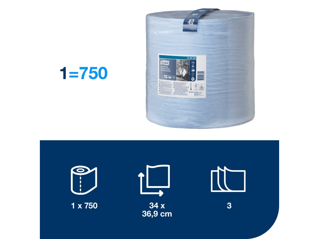 TORK 130080 – Heavy Duty průmyslová papírová utěrka W1, velká role, 3vr., 750útr