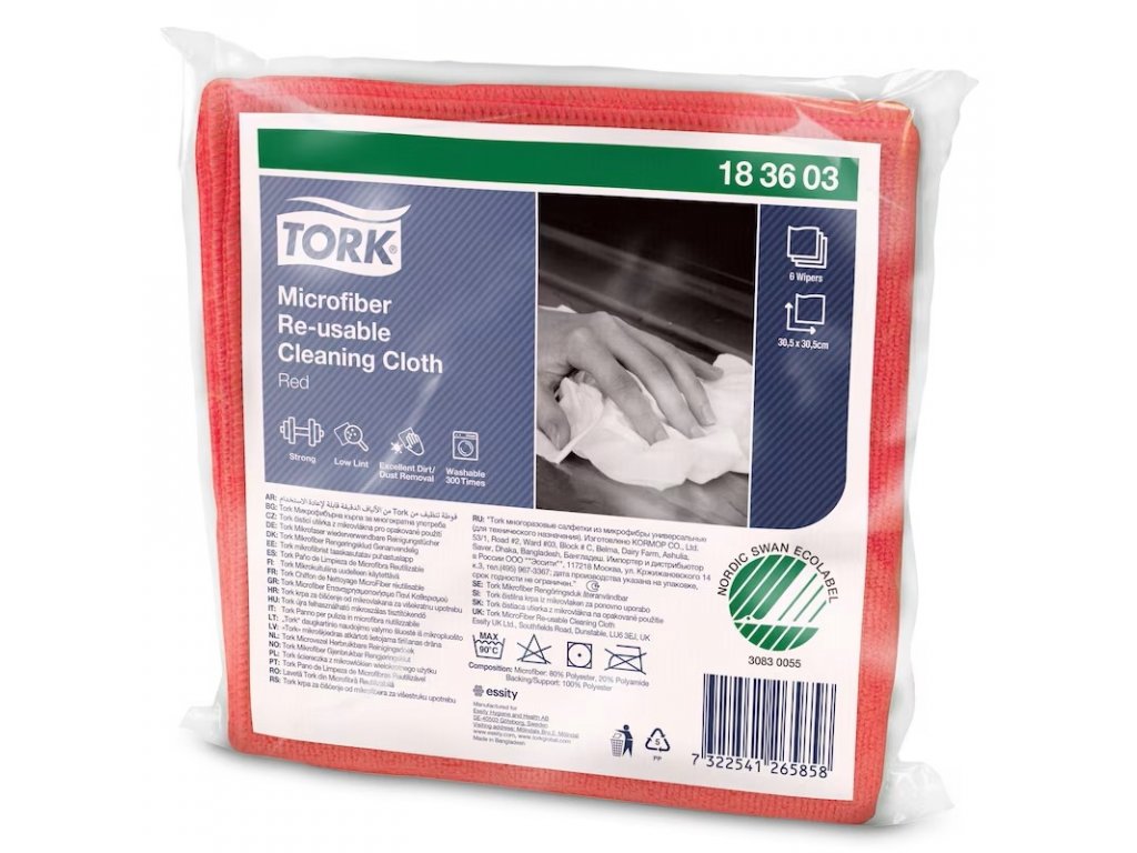 TORK 183603 – Čistící utěrka z mikrovlákna, opakované použití, červená, 8 x 6 ks - Karton