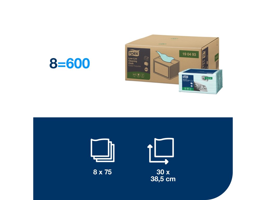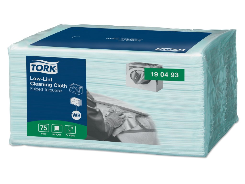 TORK 190493 – Low–Lint čisticí utěrka W8, tyrkysová, netkaná text., 75útr. - Karton