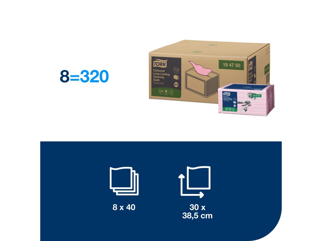 Odolná čisticí utěrka s vynikajícími absorpčními schopnostmi, kterou lze používat opakovaně, aniž by se roztrhla. K dispozici je ve čtyřech barvách, aby se předešlo křížové kontaminaci. Utěrky lze používat v Tok zásobníku na Small Pack W8, který je vymyšlen tak, aby zaručoval bezpečnost, účinnost a spolehlivost díky snadnému plnění, funkcím dávkování po jednom útržku a možnosti odebrat si potřebnou utěrku jen jednou rukou.
