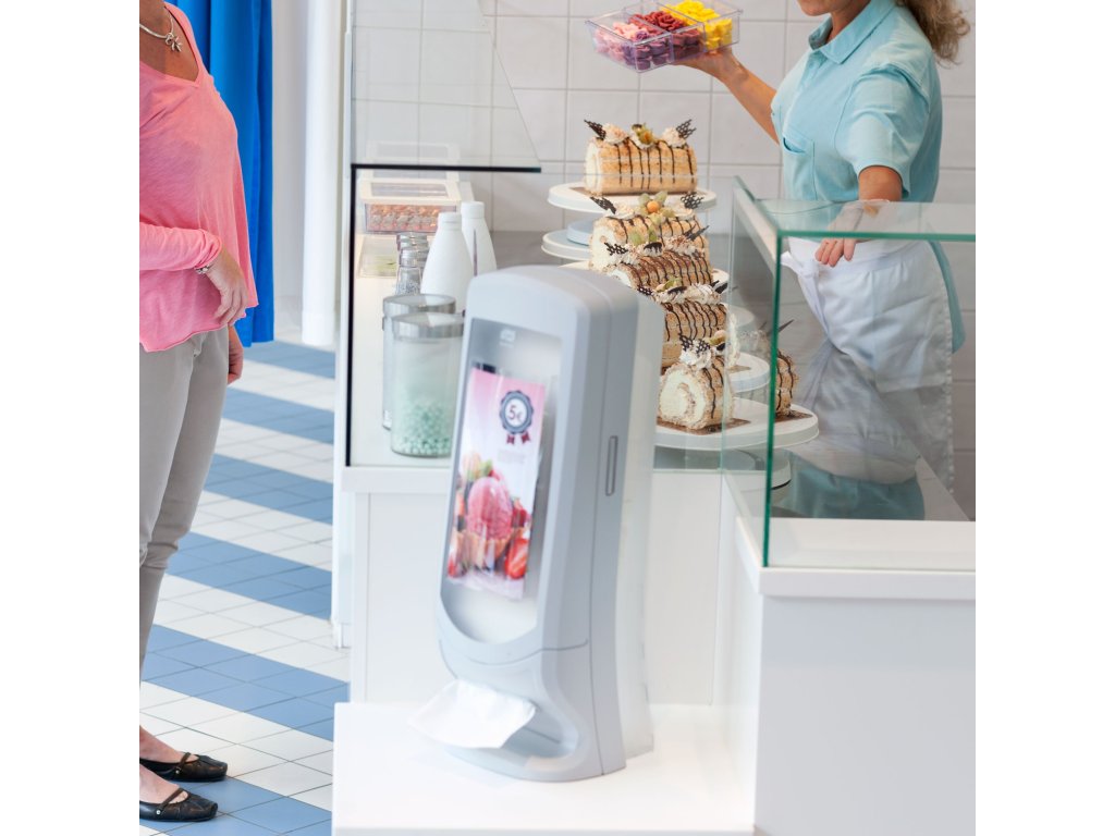 Tork Xpressnap® vysokokapacitní zásobník na ubrousky, ideální pro restaurace s omezenou obsluhou a velkou návštěvností. Tento moderní zásobník dávkuje ubrousky po jednom, zvyšuje hygienu a v porovnání s tradičními zásobníky na ubrousky snižuje spotřebu minimálně o 25 %.