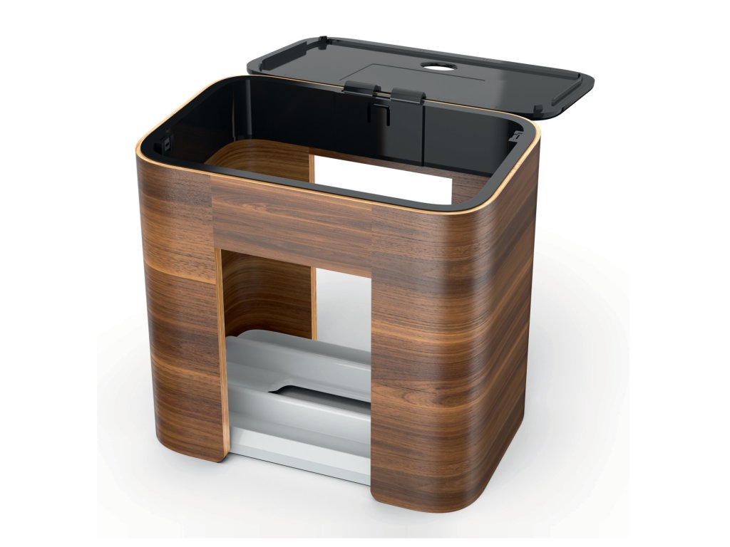 - Zásobník je nenáročný na prostor a na pultu zabírá minimum plochy.
