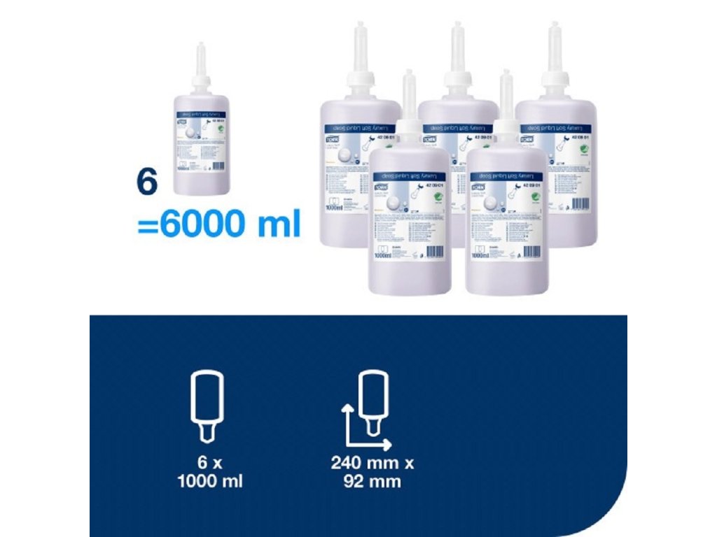 TORK 420911 — Luxusní jemné tekuté mýdlo S1, 1000 dávek, 6 x 1000 ml - Karton