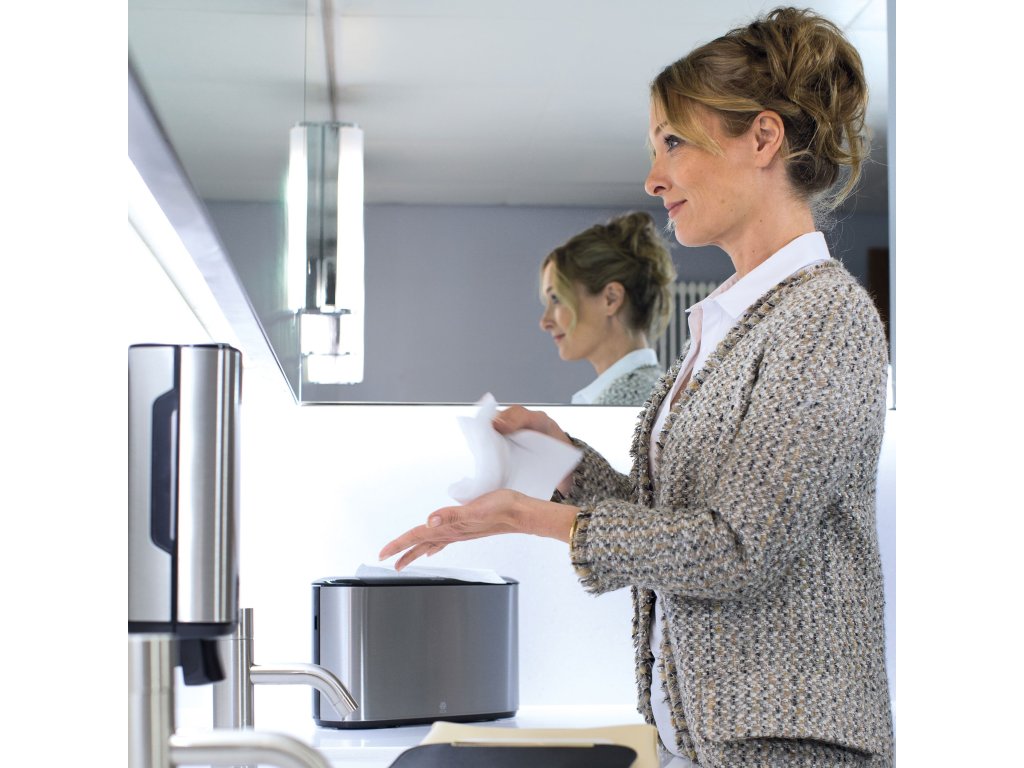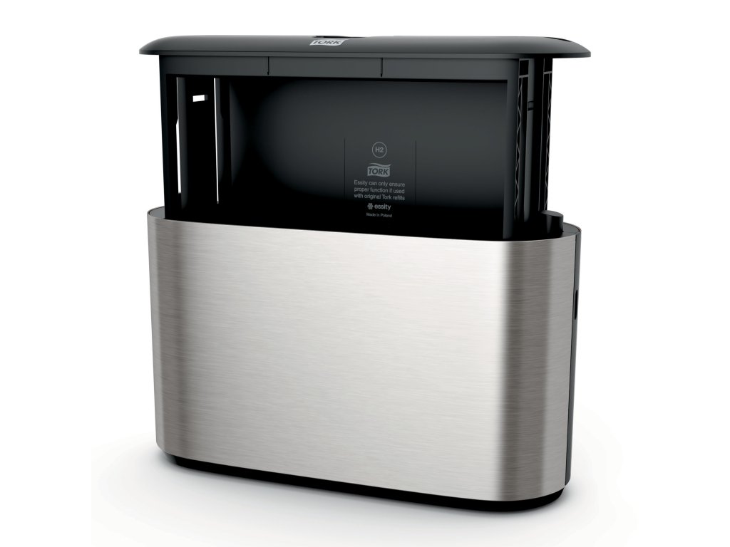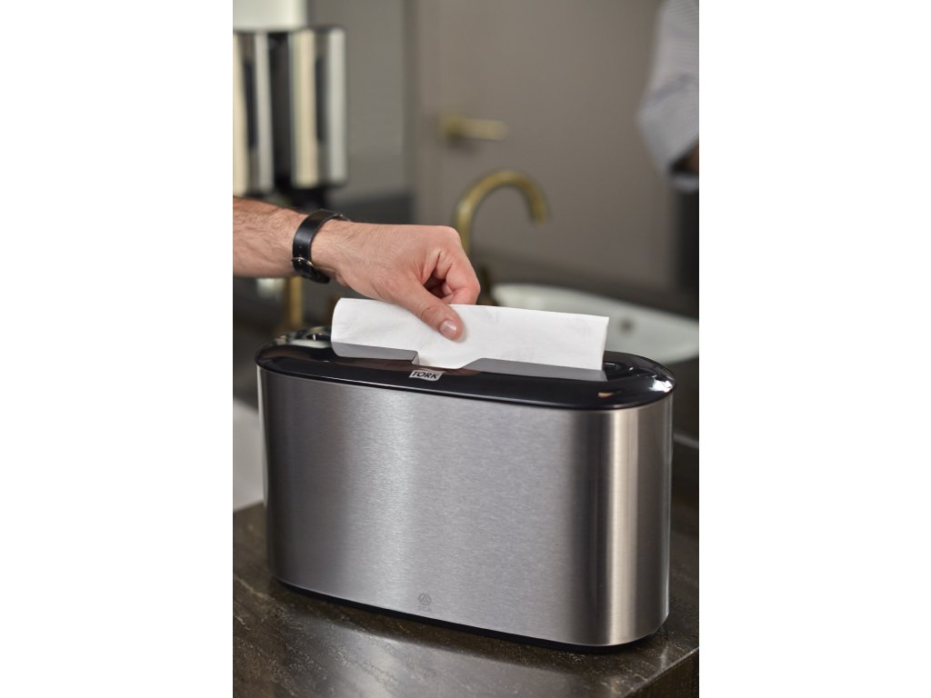 Moderní design s hladkým povrchem a čistými liniemi, který zapadá do vaší toalety nebo umývárny. Vytváří velmi dobrý dojem, který zesiluje vysoce kvalitní obraz vašeho zařízení. Zásobník z nerez oceli s vrstvou chránící před otisky prstů. Tork Xpress® Countertop zásobník na papírové ručníky Multifold je navržen jako alternativa k volně ležícím ručníkům v prostoru u umyvadla. Je exkluzivní a skvěle se hodí do toalet a umýváren ve fascinujícím stylu. Zásobník je kompatibilní s Tork skládanými ručníky s označením H2.