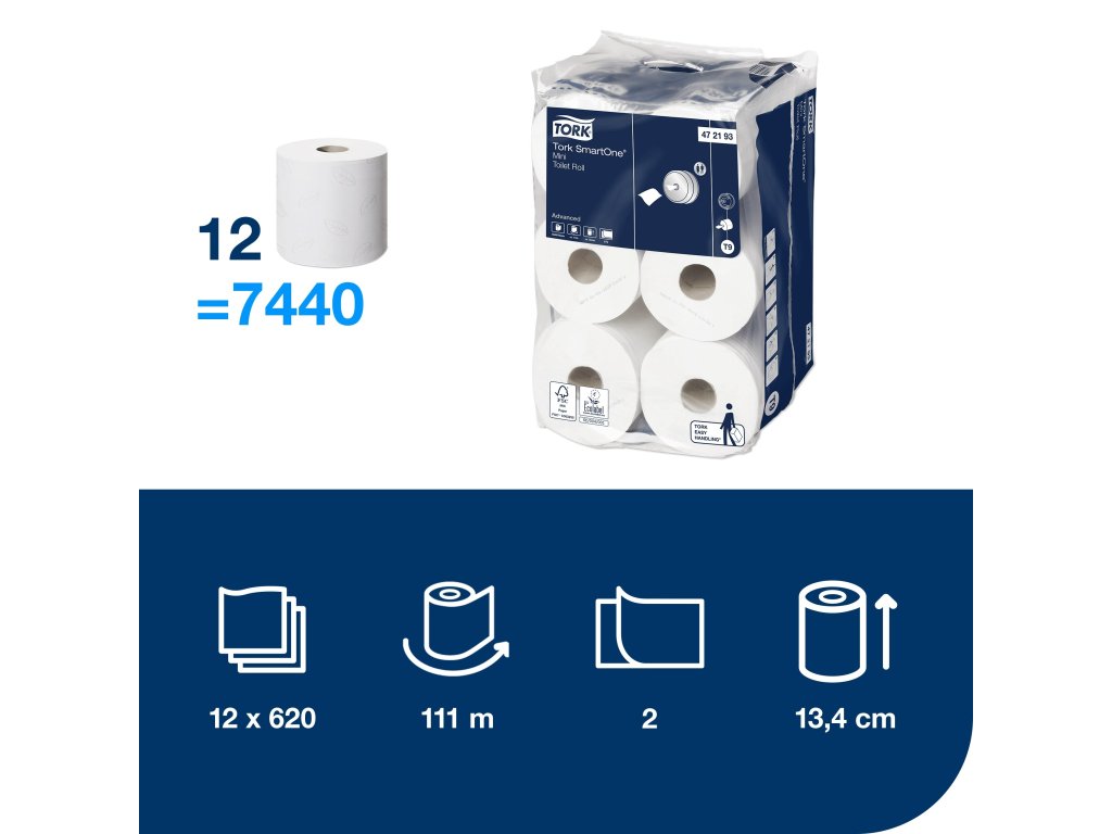 TORK 472193 – SmartOne© Mini toaletní papír T9, 12 rl., 2 vrst., 620 útr./rl., 13,4 x 18 cm - Karton