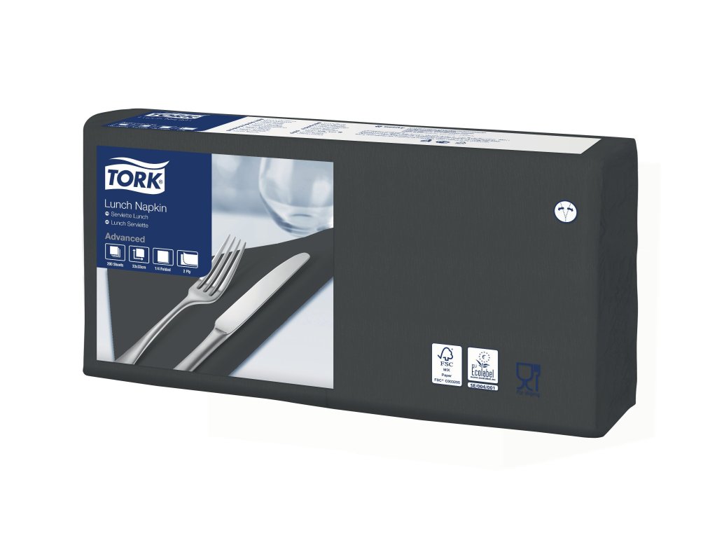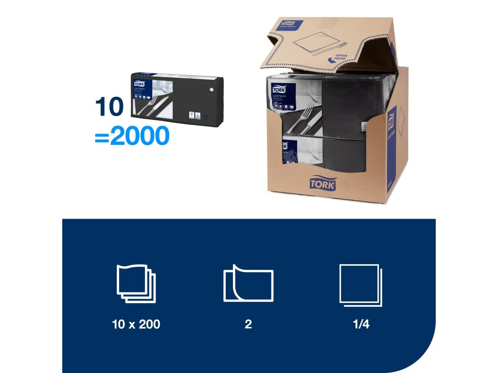 TORK 477148 – Černý ubrousek, 2 vr. – oběd, 10 x 200 ks - Karton