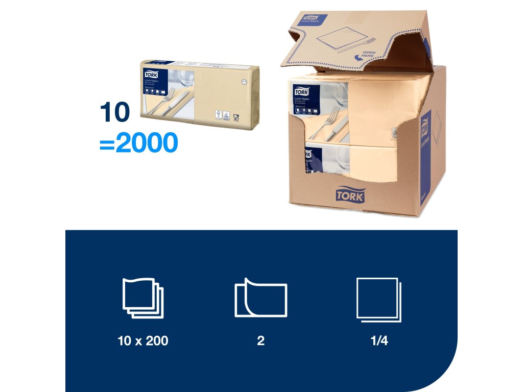 TORK 477206 – Ubrousek slonová kost, 2 vr. – oběd, 10 x 200 ks - Karton