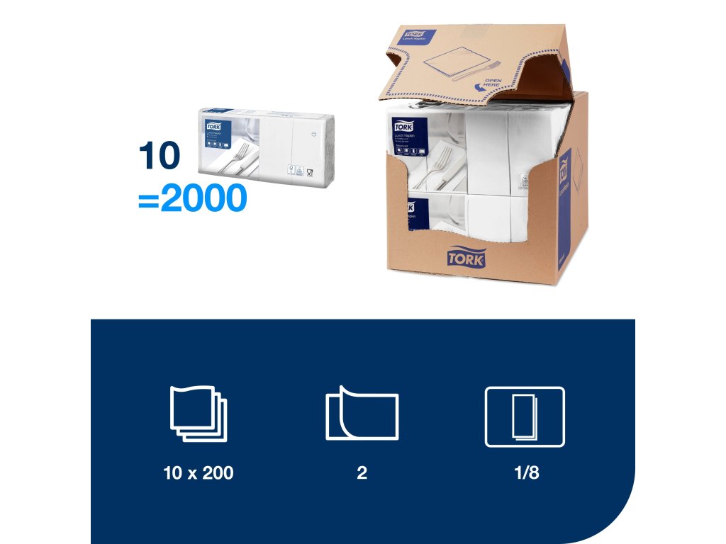 TORK 477402 – Bílý ubrousek, 2 vr. – oběd, 10 x 200 ks - Karton