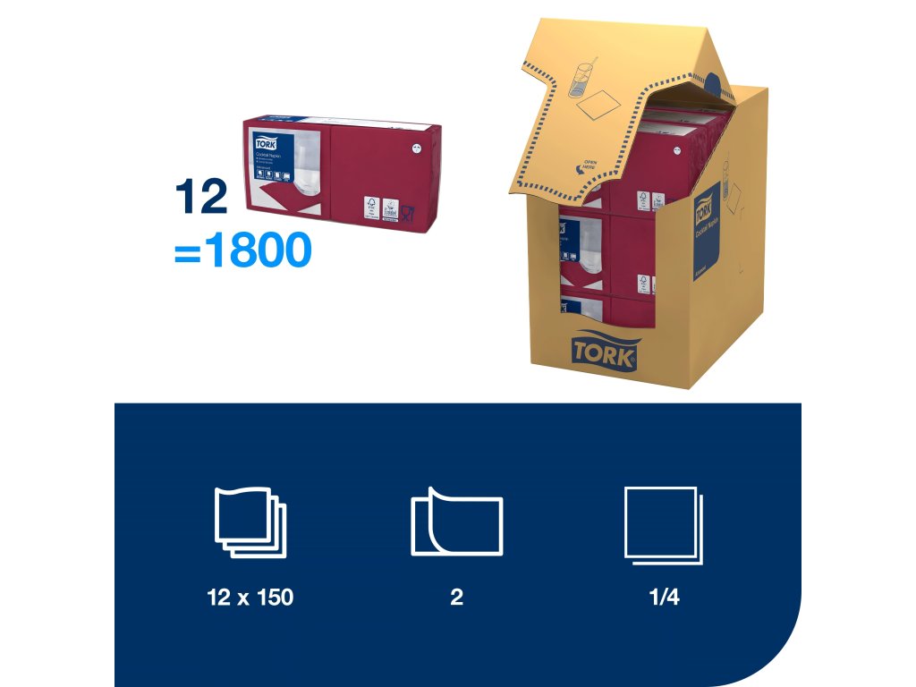 Tork koktejlové ubrousky jsou ideální do barů a kaváren, kde se podávají sendviče a nápoje. Jsou k dispozici v široké nabídce moderních i klasických barev, které oživí každý stůl.