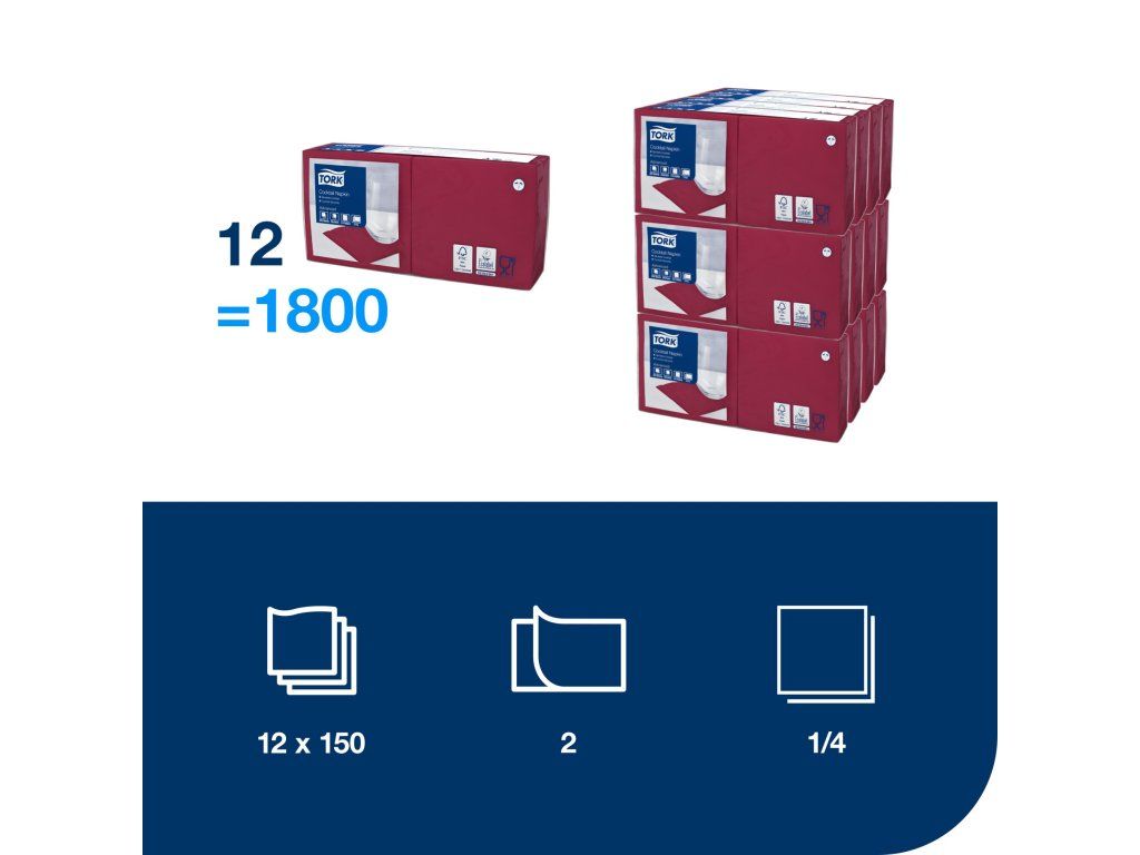 Tork koktejlové ubrousky jsou ideální do barů a kaváren, kde se podávají sendviče a nápoje. Jsou k dispozici v široké nabídce moderních i klasických barev, které oživí každý stůl.