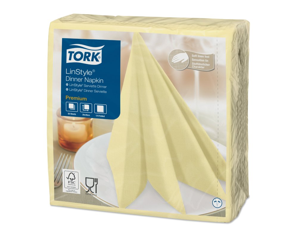 Ubrousky Tork Linstyle® pomohou při utváření dojmu hostů v restauracích s plnou obsluhou, kde je kladen důraz na kvalitu. Vypadají a na omak působí jako textilní ubrousky. Jsou znatelně jemnější a pevnější než standardní papírové ubrousky a vyznačují se vynikající savostí. Nabídněte svým hostům eleganci v podobě textilního ubrousku v celé řadě moderních a klasických barev.