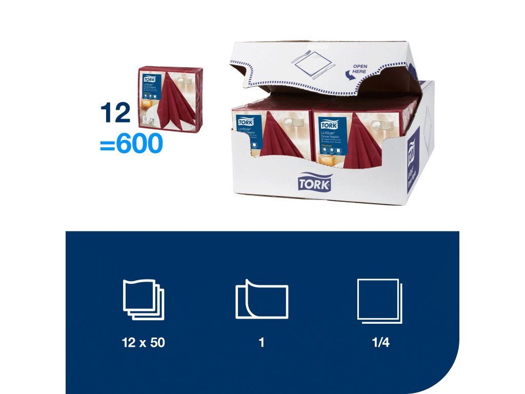 TORK 478855 – Linstyle® burgundy ubrousky – večeře, netkané, 1 vr., 1/4 sklad, 12x50 ks - Karton