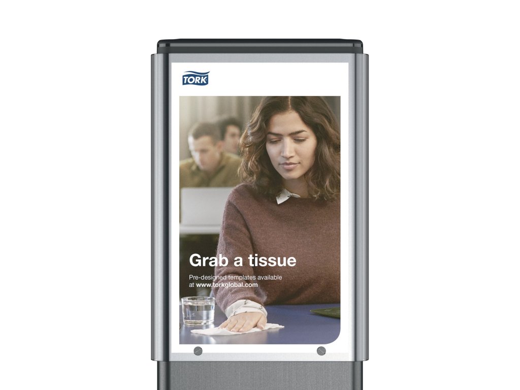 AD-A-Glance® pro hygienický stojan Tork je komunikační nástroj, který podporuje zlepšení hygieny v kancelářích a dalších veřejných prostorách. Ideální způsob, jak připomínat důležitost hygieny rukou nebo sdělovat jiné důležité informace.