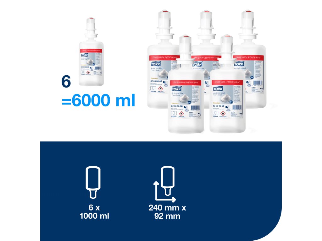 TORK 520800 – Antimikrobiální pěnové mýdlo S4, 6x1000 ml - Karton