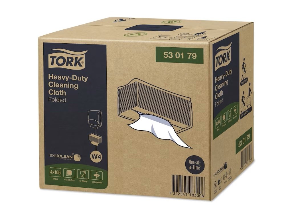 Opakovaně použitelné čistící utěrky Tork-Heavy-Duty v průmyslových provozech účinně odstraní olej, mastnotu, vodu a jiné odolné skvrny. Vysoce odolný (Heavy-Duty) design chrání ruce před teplem a kovovým šrotem. Technologie exelCLEAN® snižuje používání rozpouštědel až o 41 %, což prospěje zdraví zaměstnanců a životnímu prostředí. Výdej po jednom kuse omezuje plýtvání. Obal je vyrobený z recyklovaných materiálů. Utěrky jsou kompatibilní s Tork zásobníky na skládané utěrky W4.