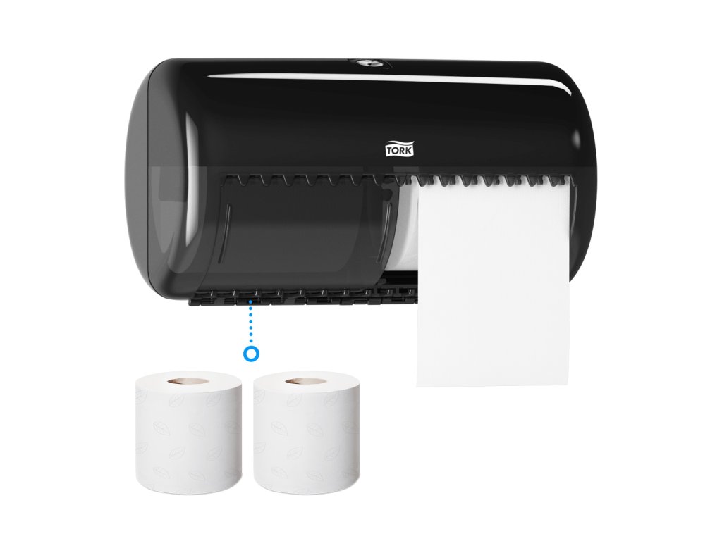 Tork zásobník na toaletní papír konvenční role v designu Elevation je vhodný pro toalety a umývárny s nízkou návštěvností. Pojme dvě konvenční role toaletního papíru a snižuje tak frekvenci nutné údržby. Zásobníky Elevation se vyznačují funkčním a moderním designem, který na vaše hosty udělá trvalý dojem.