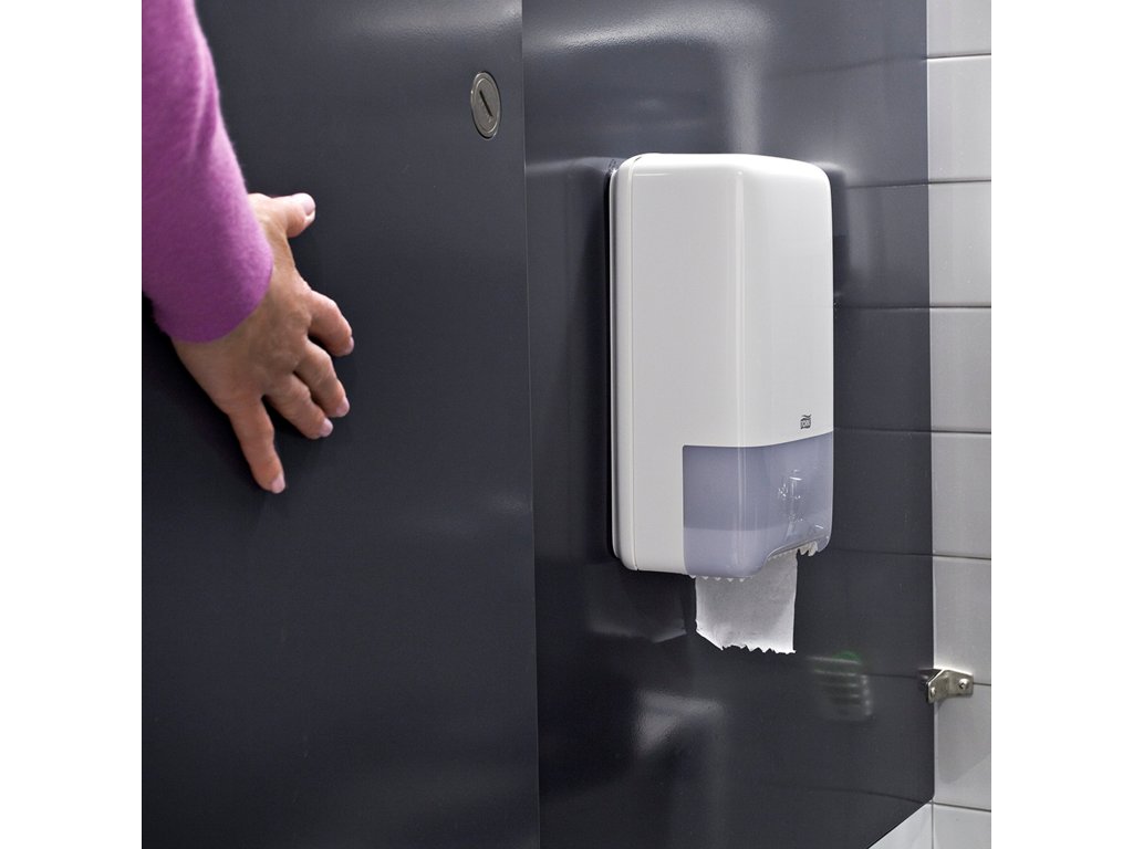 Tork Twin Mid-size zásobník na toaletní papír v roli v designu Elevation je ideální pro toalety a umývárny se střední až vysokou návštěvností, kde cílem je především spokojenost hostů. Nabízí vysokou efektivitu a zaručuje návštěvníkům stálou dostupnost toaletního papíru, neboť pojme až šestkrát více papíru než dvě konvenční role toaletního papíru. Zásobníky Elevation se vyznačují funkčním a moderním designem, který na vaše hosty udělá trvalý dojem. Zásobník je kompatibilní s Tork Mid–Size toaleními papíry T6.