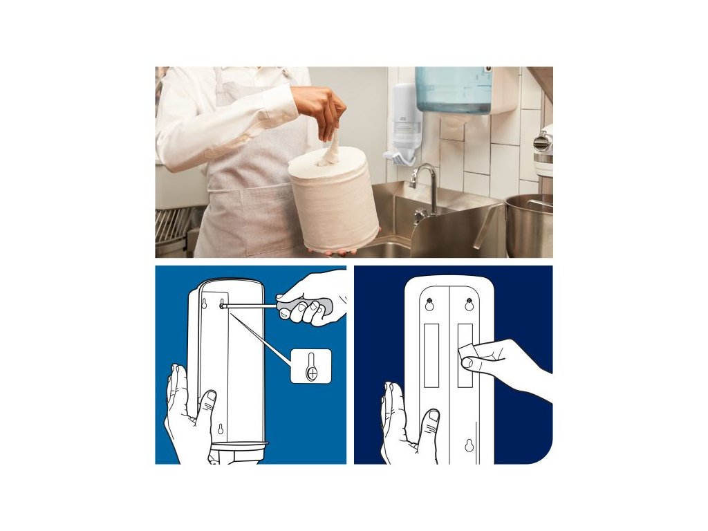 Představujeme nový univerzální model Tork dávkovače prostředků na ruce s loketní pákou S4, který umožňuje použití jakékoli náplně Tork S4, ať už se jedná o pěnové, tekuté, gelové prostředky či pleťové mléko – čímž se eliminuje potřeba různých specifických zásobníků pro jednotlivé produkty.