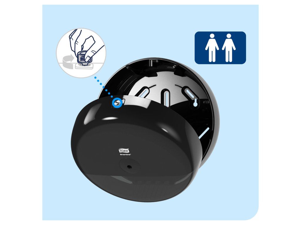 Dávkování po jednotlivých útržcích pomáhá v porovnání s tradičními zásobníky na jumbo role snížit spotřebu až o 40 %. Díky tomu vystačí každá role pro více návštěvníků. Zásobníky Tork Elevation se vyznačují funkčním, moderním designem, který na vaše hosty udělá trvalý dojem. Zásobník je kompatibilní s Tork SmartOne toaletním papírem T8.