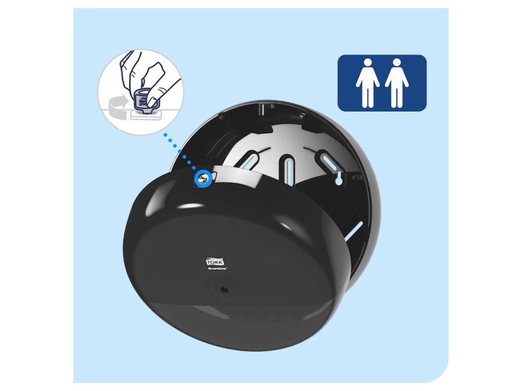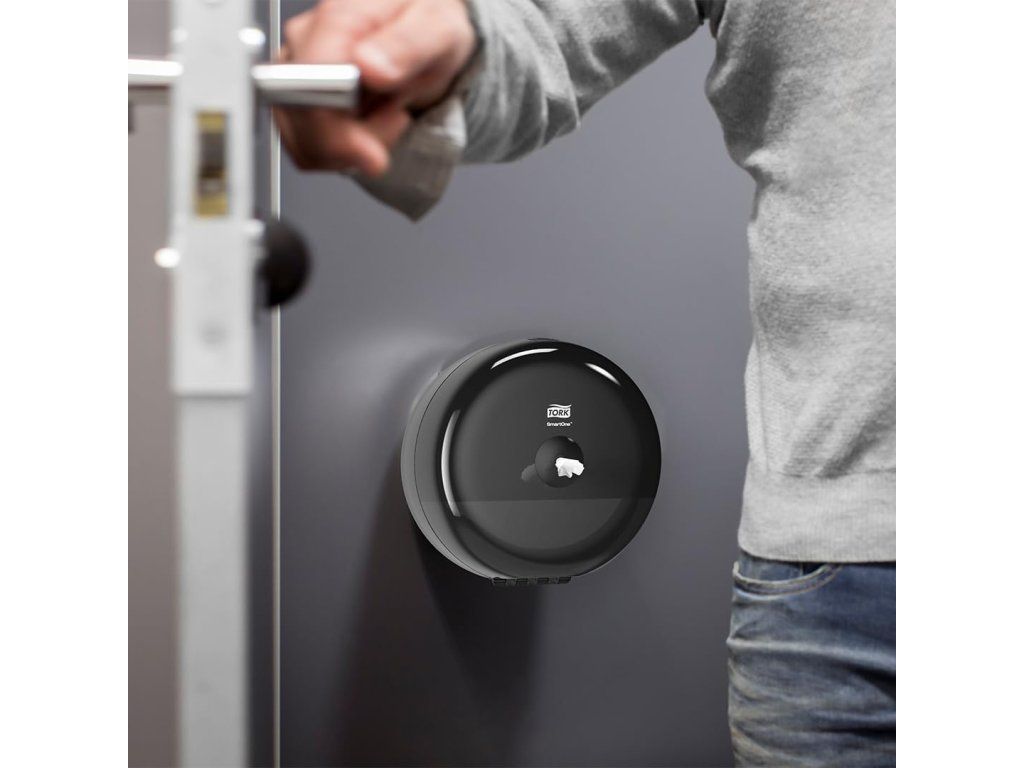 Dávkování po jednotlivých útržcích pomáhá v porovnání s tradičními zásobníky na jumbo role snížit spotřebu až o 40 %. Díky tomu vystačí každá role pro více návštěvníků. Zásobníky Tork Elevation se vyznačují funkčním, moderním designem, který na vaše hosty udělá trvalý dojem. Kompatibilní s Tork SmartOne Mini toaletním papírem T9.