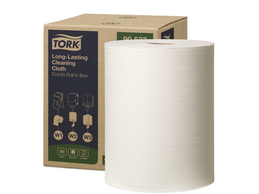 Tork Long-Lasting čisticí utěrka je vysoce absorpční a velmi odolná, proto je vynikající pro opakované použití bez roztržení. Utěrky lze používat v Tork stojanech na podlahu W1 a v držácích rolí na zeď W1, které zaručují bezpečnost, účinnost a spolehlivost. Role jsou též kompatibilní s Tork Maxi zásobníky na role se středovým odvíjením W2, které jsou navrženy pro hladší dávkování jednou rukou. Využít lze také jednoduchý otevřený Tork zásobník na kombi role v boxu W3.