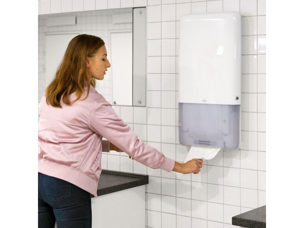 - Odběr ručníků je rychlý a snadný díky patentovanému systému navazujících papírových ručníků