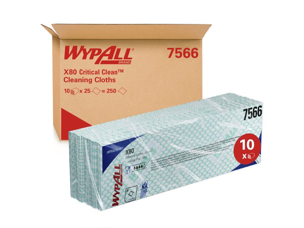 WYPALL – X80 – Skládané čistící utěrky, zelené, 10 x 25 ks, 41 x 33 cm